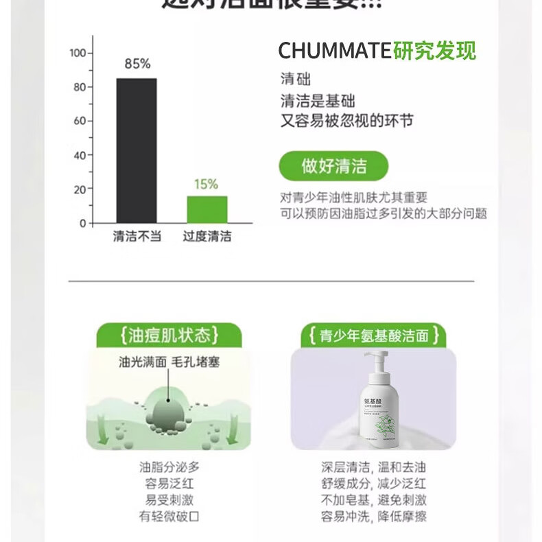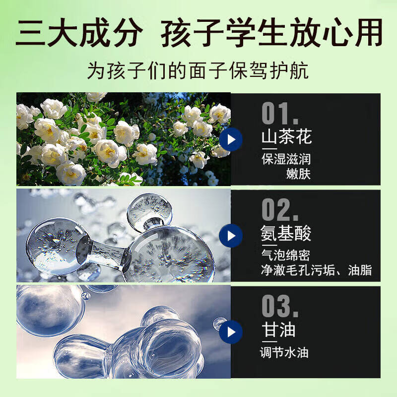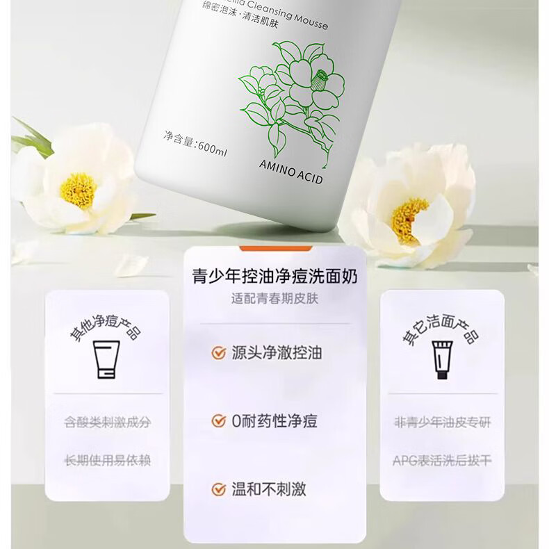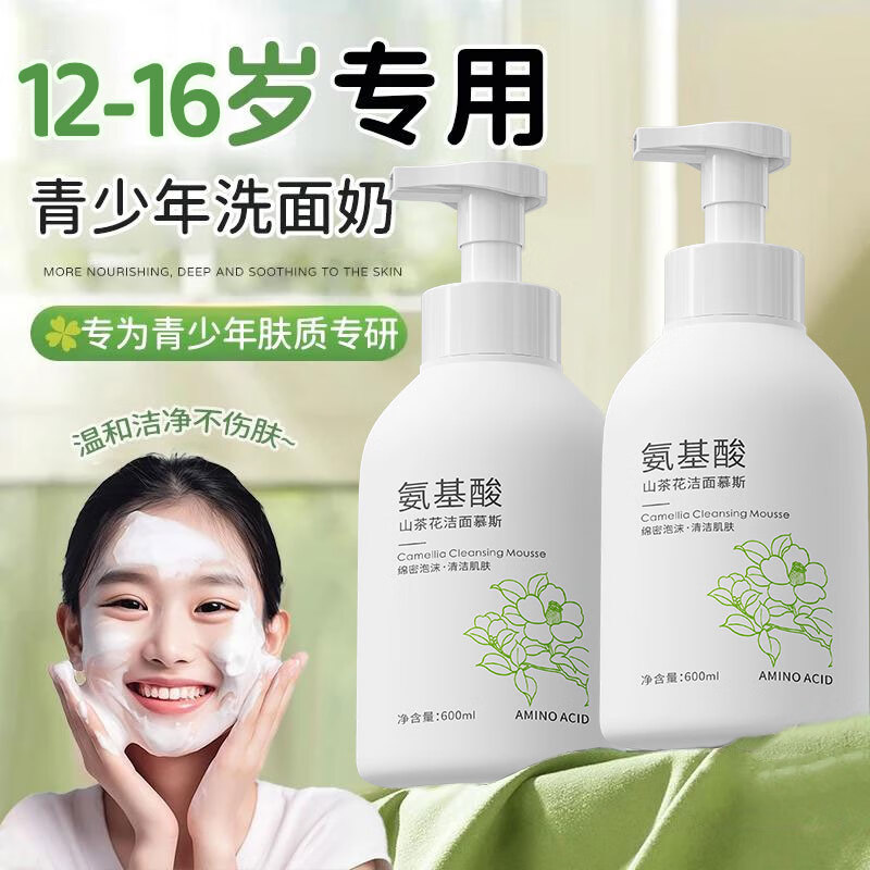 初蔓青少年氨基酸洗面奶12-16岁控油祛痘除螨虫去黑头缩毛孔男女通用 【青少年优选】洁面慕斯1瓶 男士女神品牌正品洗面奶排行前十