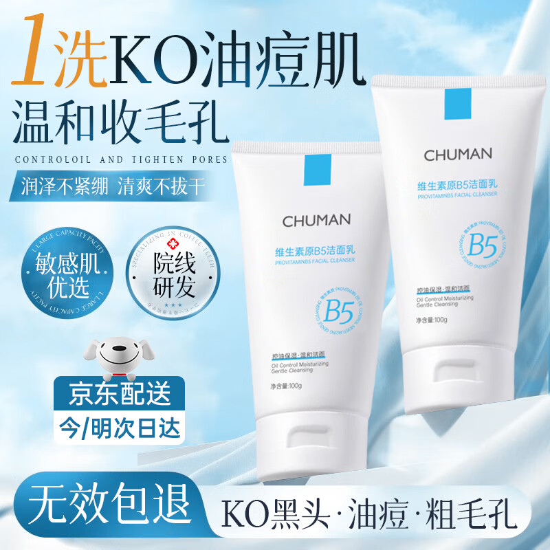 初蔓氨基酸洗面奶男女士控油祛痘除螨虫去黑头深层清洁收缩毛孔洁面乳 【控油净毛孔】B5洁面乳*1支 明星推荐B5洗面奶热销榜TOP