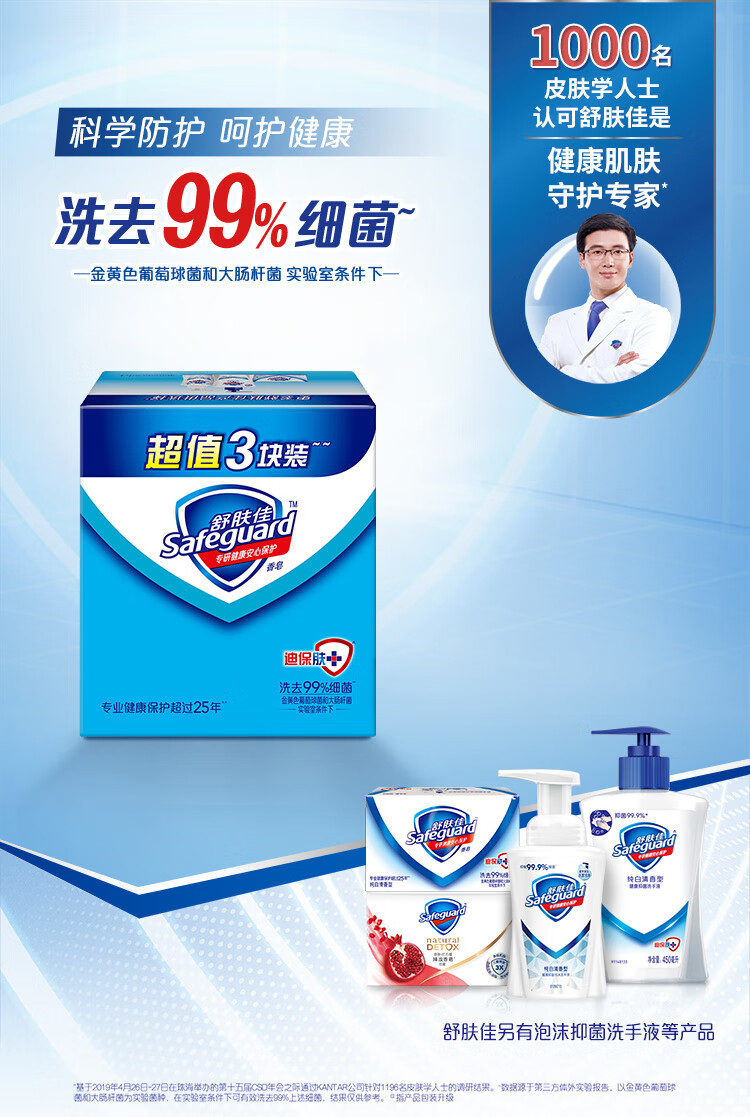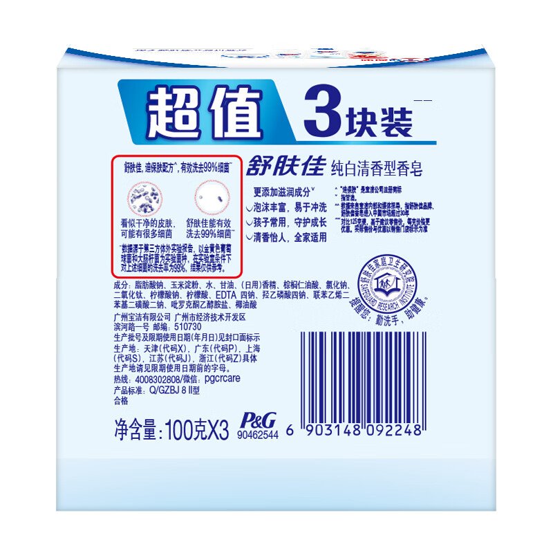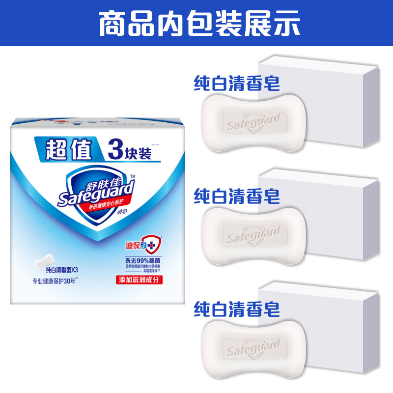 舒肤佳排浊香皂红石榴100g*3肥皂 洗澡洗脸洗手洁面 男女士通用