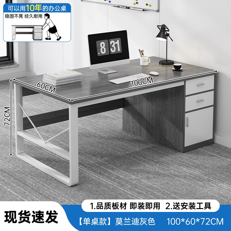 米客米家职员办公桌办公室台式电脑桌财务工位桌椅组合简易书桌工作台桌子 【推荐单桌款】莫兰迪灰色100cm 组装(配有图纸)