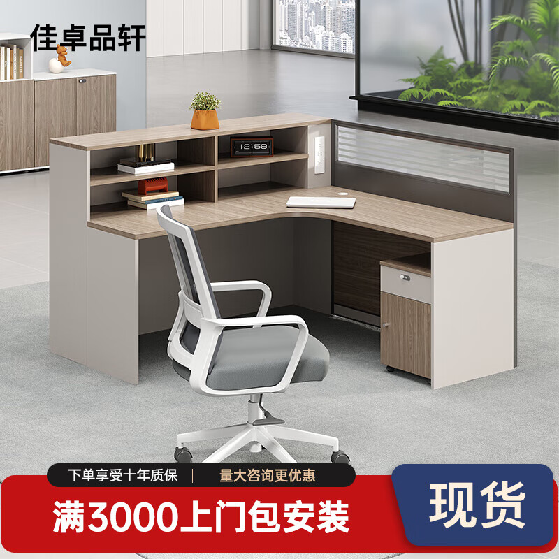 佳卓品轩简约现代办公桌财务办公桌椅组合电脑办公室家具2/4/6人位职员桌 【免走线插座】L型单人位