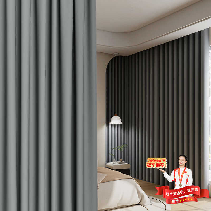舒帘家用遮光帘2025新款全遮光挂钩式遮阳卧室隔热防晒窗帘免打孔阳台 冰川灰【送挂钩】遮光99.99% 100cm*150cm 【宽*高】