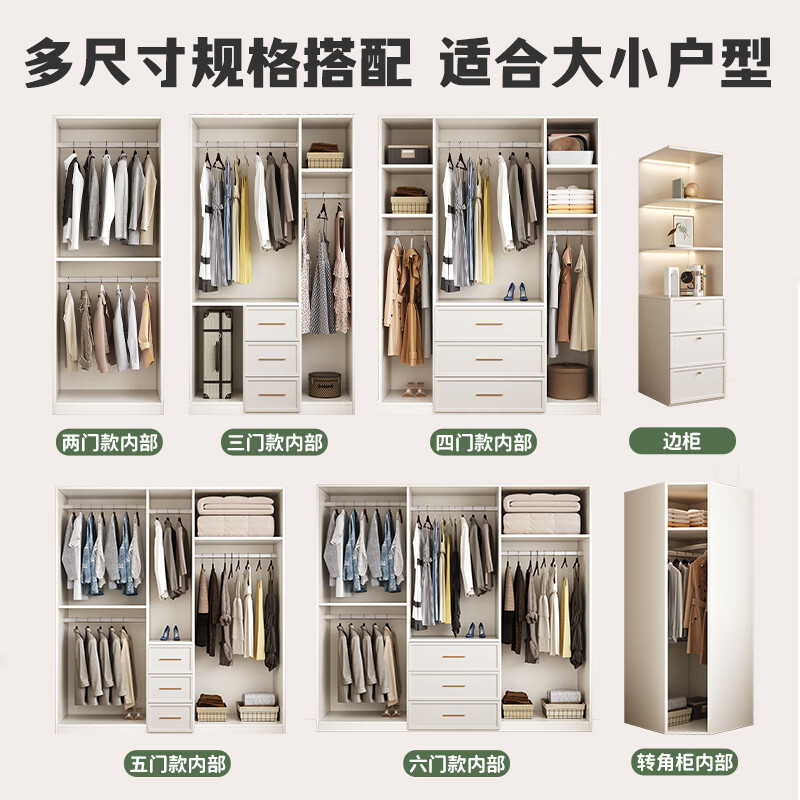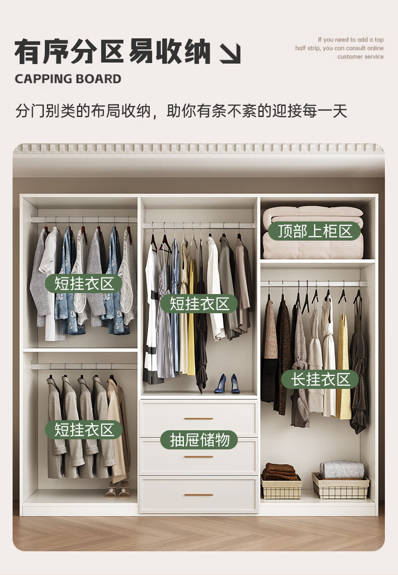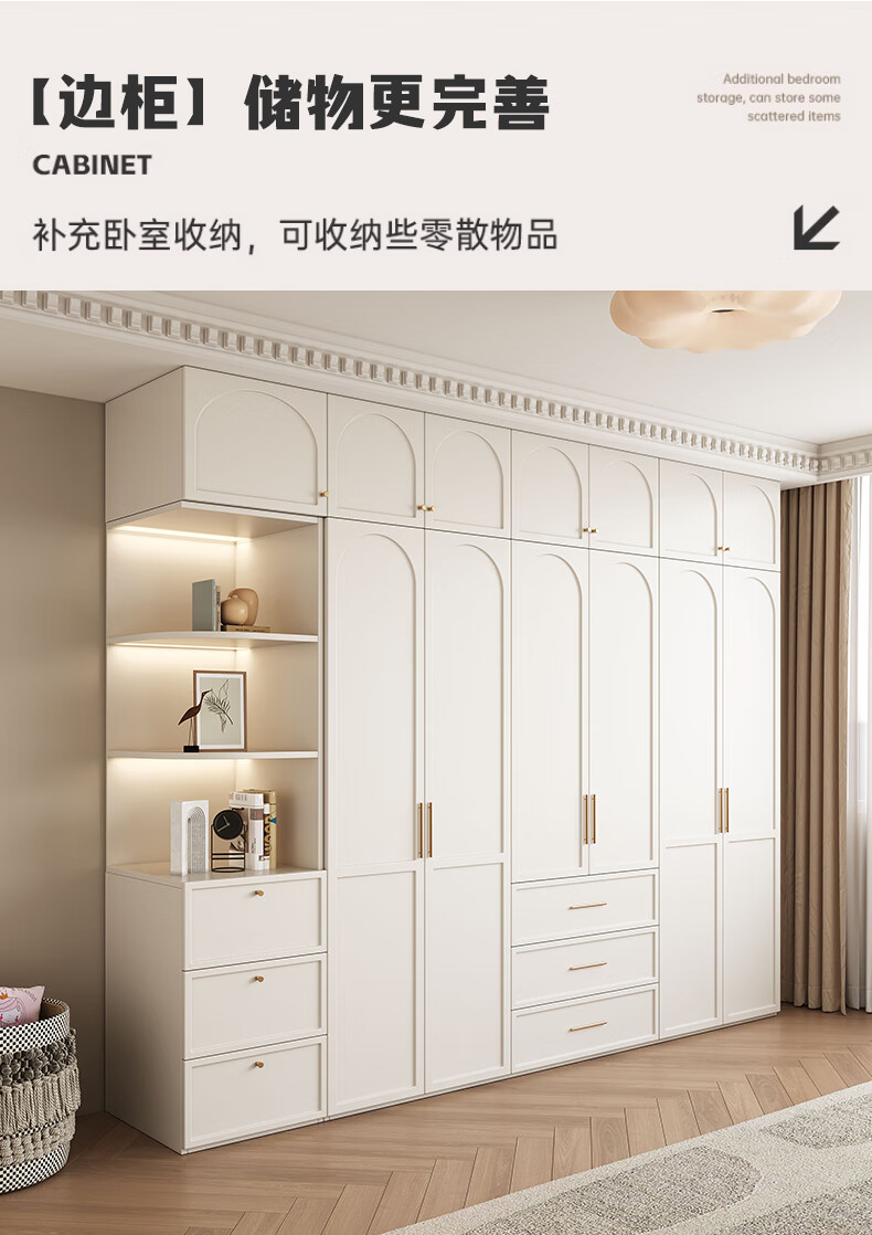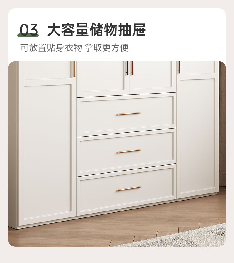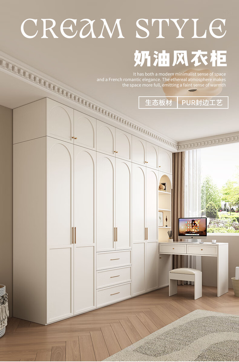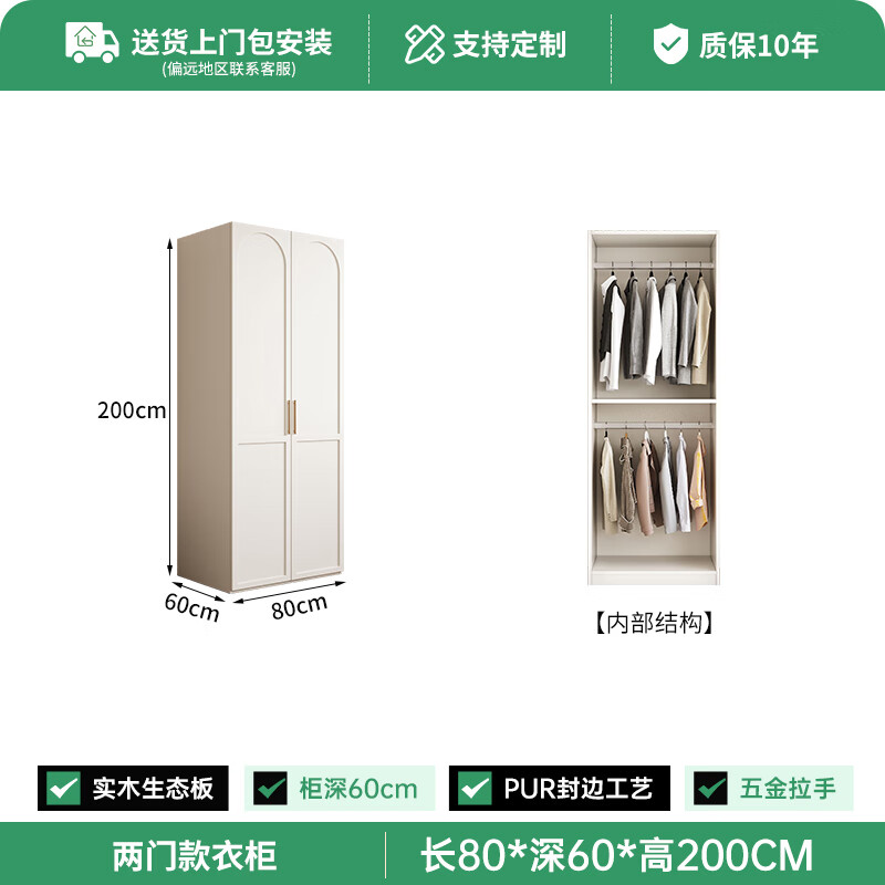 梓枔【免费安装】衣柜卧室法式奶油风小户型家用卧室储物柜轻奢大衣橱 80CM主柜【实木生态板】