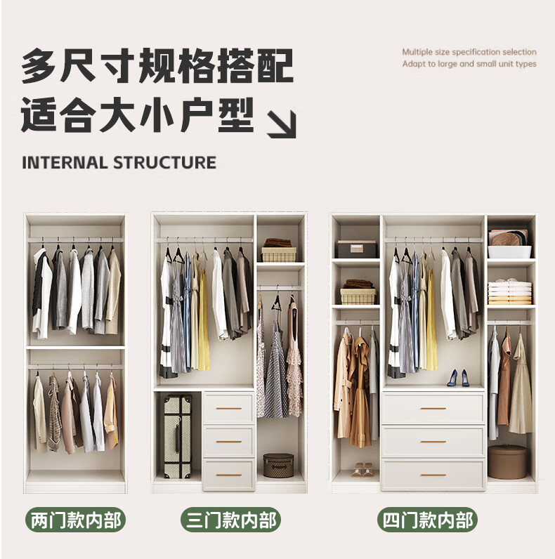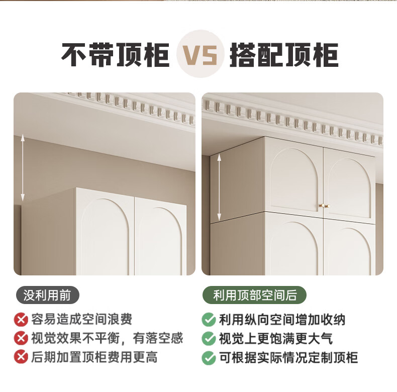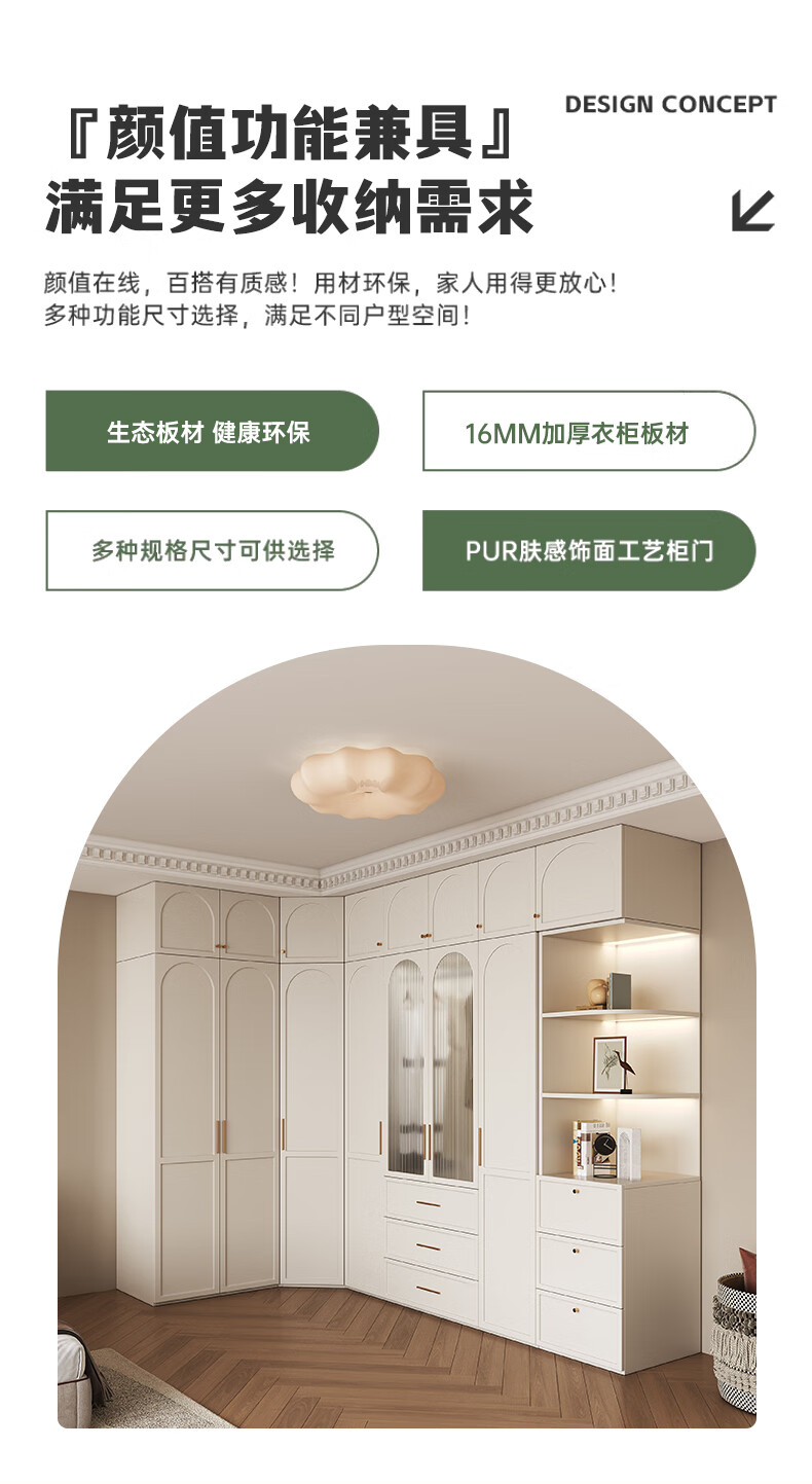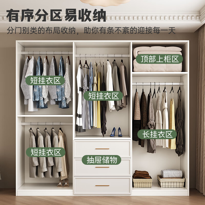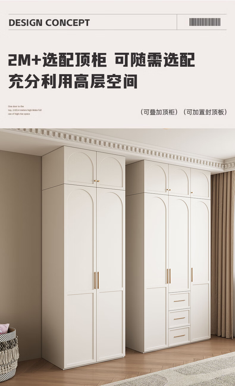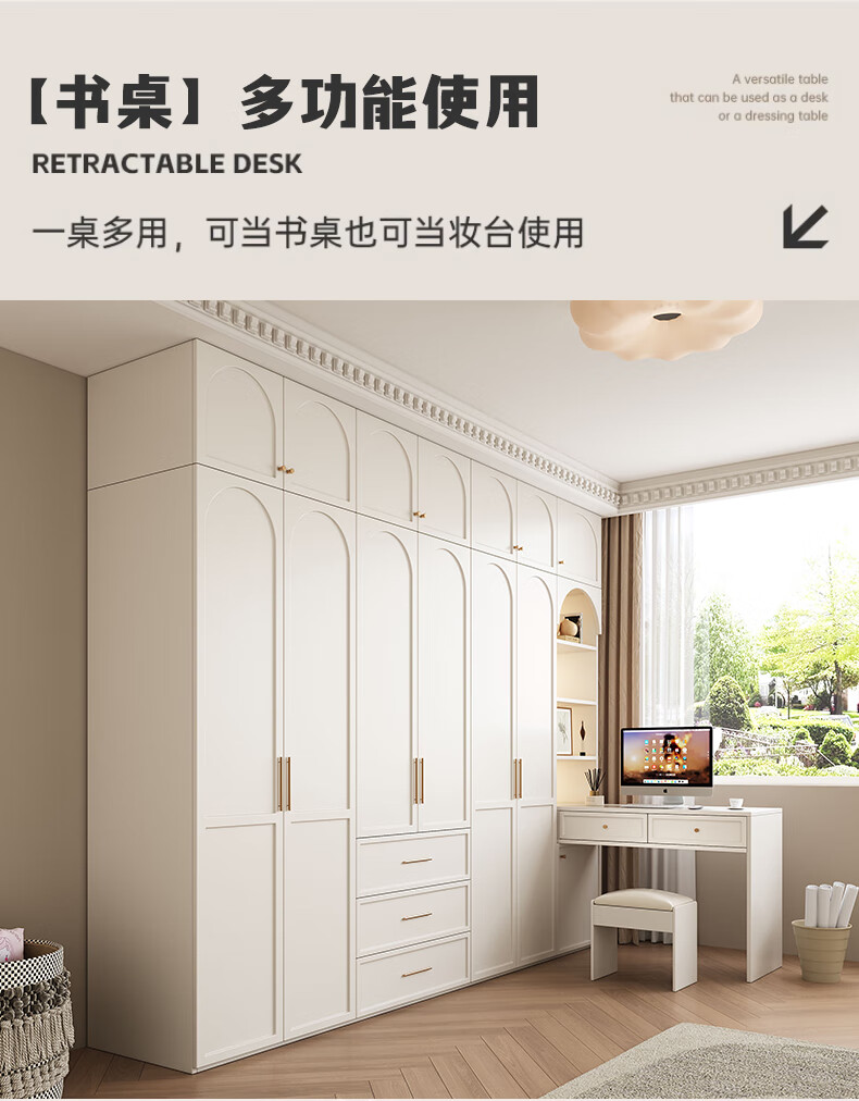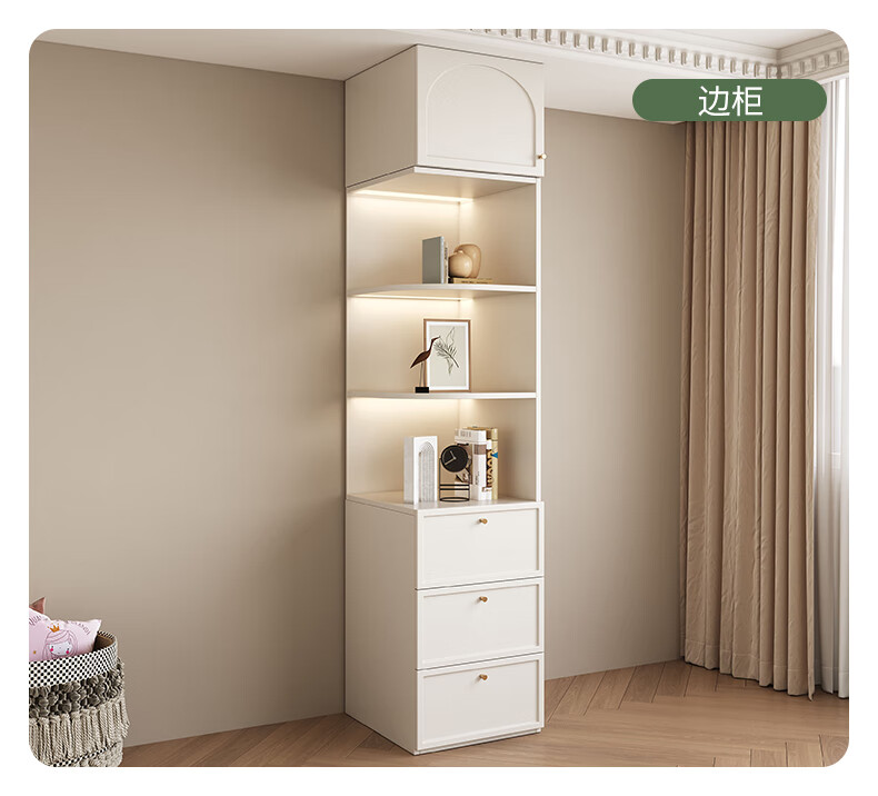 梓枔【免费安装】衣柜卧室法式奶油风小户型家用卧室储物柜轻奢大衣橱 80CM主柜【实木生态板】
