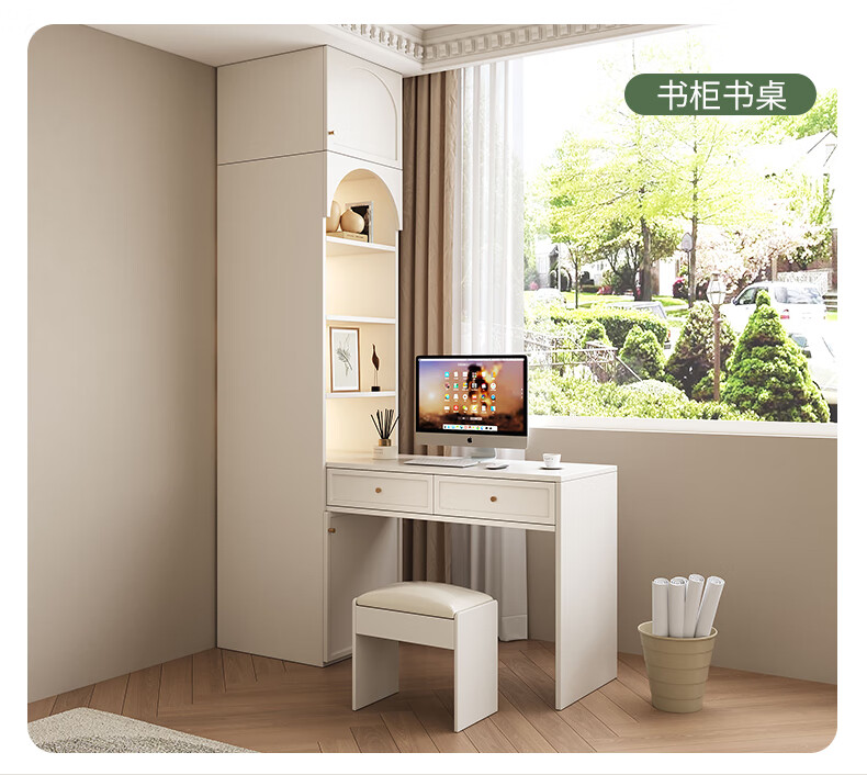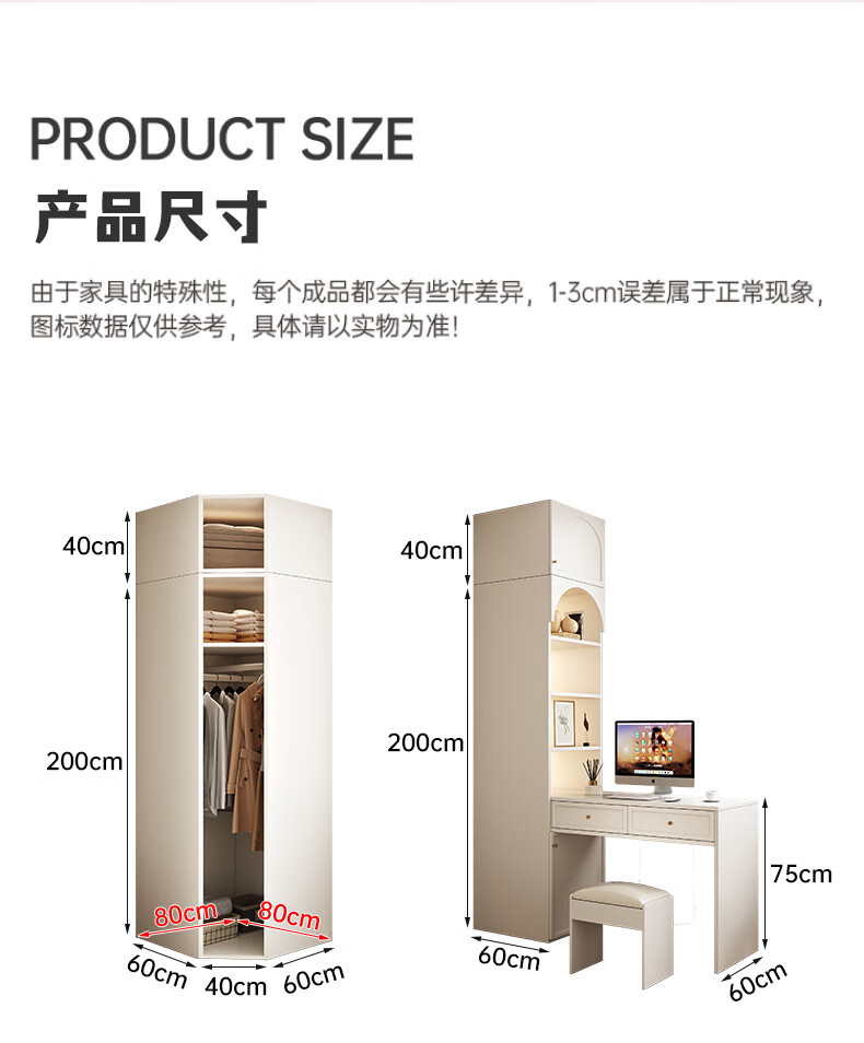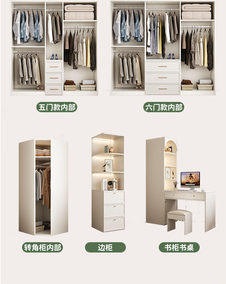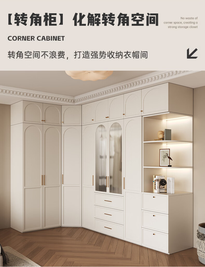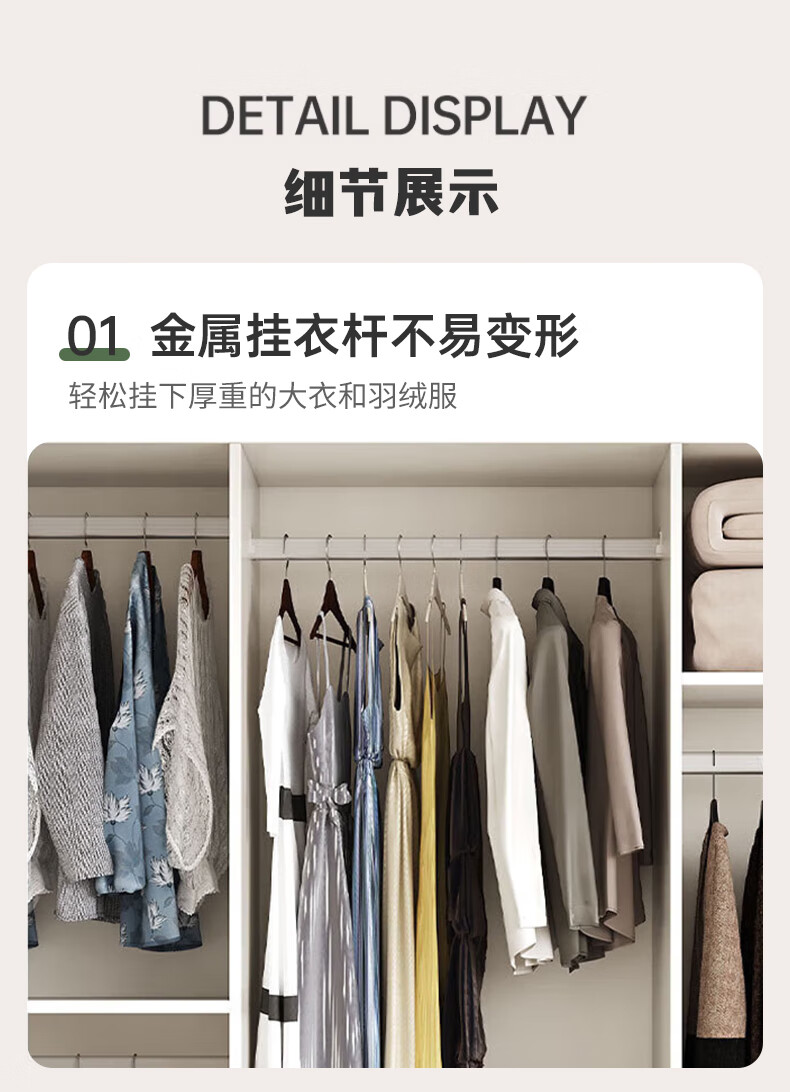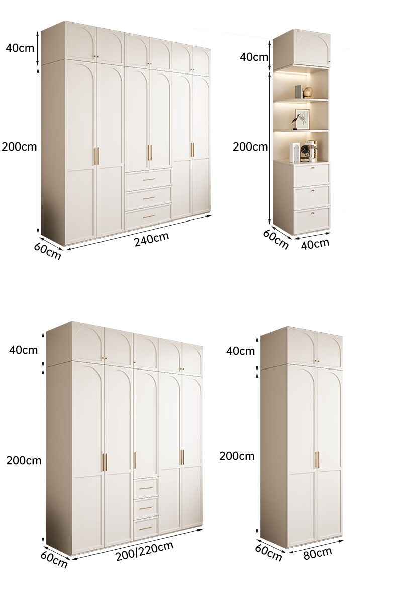 梓枔【免费安装】衣柜卧室法式奶油风小户型家用卧室储物柜轻奢大衣橱 80CM主柜【实木生态板】